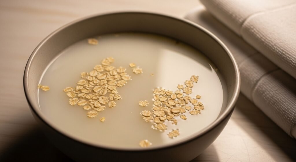 Finely ground oatmeal mixed into lukewarm water creates a soothing soak that helps reduce itching and visible redness because it contains natural compounds known to calm inflammation. I rely on this remedy when my skin feels reactive since it provides gentle relief without disrupting the natural moisture balance.