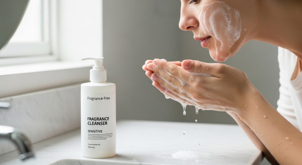 Using a mild, fragrance free cleanser prevents additional irritation while still removing dirt and environmental buildup that could worsen sensitivity. I focus on products designed for sensitive skin because harsh surfactants often strip away protective oils and delay recovery.