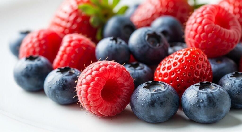 Berries such as strawberries, blueberries, and raspberries are rich in fiber and low in calories. Raspberries, in particular, provide up to 8 grams of fiber per cup. Their combination of fiber and antioxidants makes them effective for managing weight.