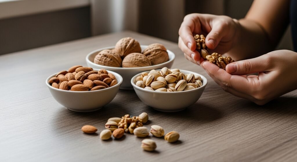 Nuts are healthy sources of fats, fiber, and plant compounds that may reduce low-density lipoprotein cholesterol and leave high-density lipoprotein in a good proportionality, which is a good balance of lipids. Nuts like almonds, walnuts, and pistachios eaten in moderation provide lasting cardiac gains without affecting nutritional objectives.