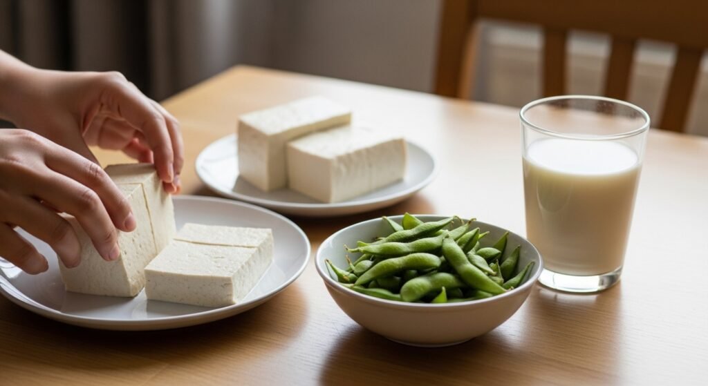 Foods that are made of soy like tofu, soy milk and edamame, also have proteins and compounds that can be used to lower the cholesterol level in the body provided the food is used to substitute higher saturated fat animal food. It is indicated in research that regular soy consumption may lead to some slight but significant changes in cardiovascular markers.