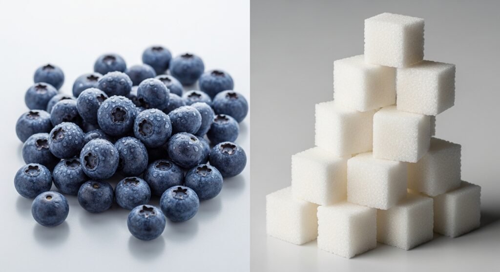 The sugar in blueberries comes with nutrients, fiber, and water, unlike refined sugar. This combination makes them a healthier choice for satisfying sweet cravings. Choosing whole fruits over processed sweets supports long term health.