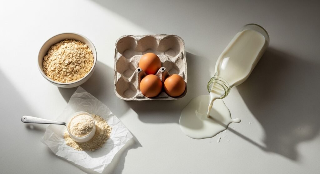 This recipe uses simple ingredients that are easy to find in most kitchens. Common options include oats, eggs, milk, and protein powder. These ingredients provide a balance of carbohydrates, protein, and healthy fats. Keeping the ingredient list minimal also saves preparation time and reduces complexity.