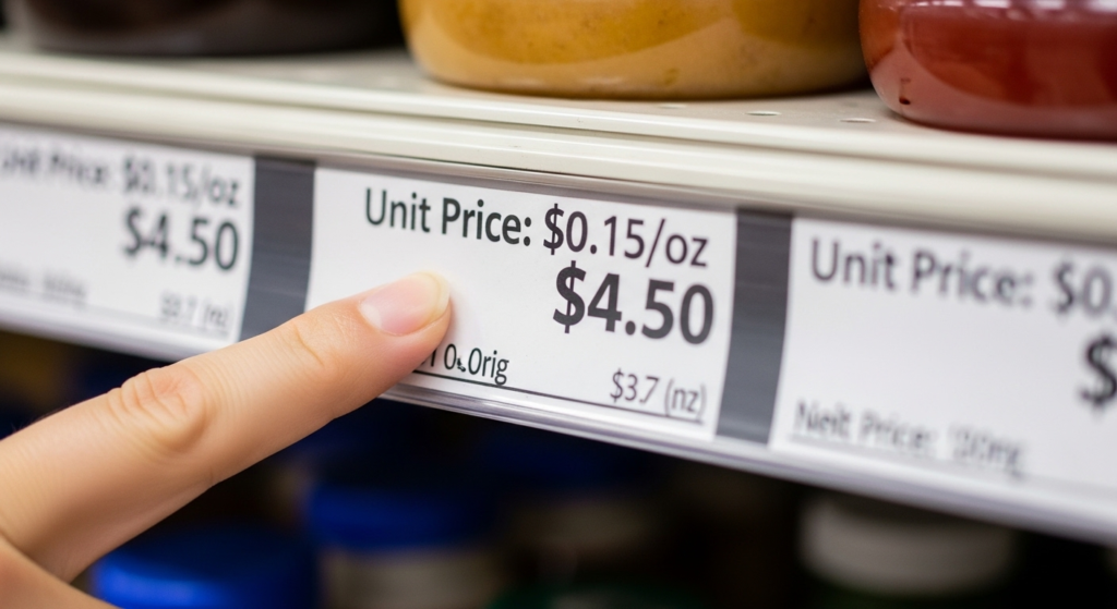 The little figures on the shelf tags frequently convey a more significant message than the actual price. Reviewing the price per pound or ounce can perhaps make you note that sometimes a bigger “value” pack is not the best investment, and you could save money by spending it on better ingredients elsewhere.