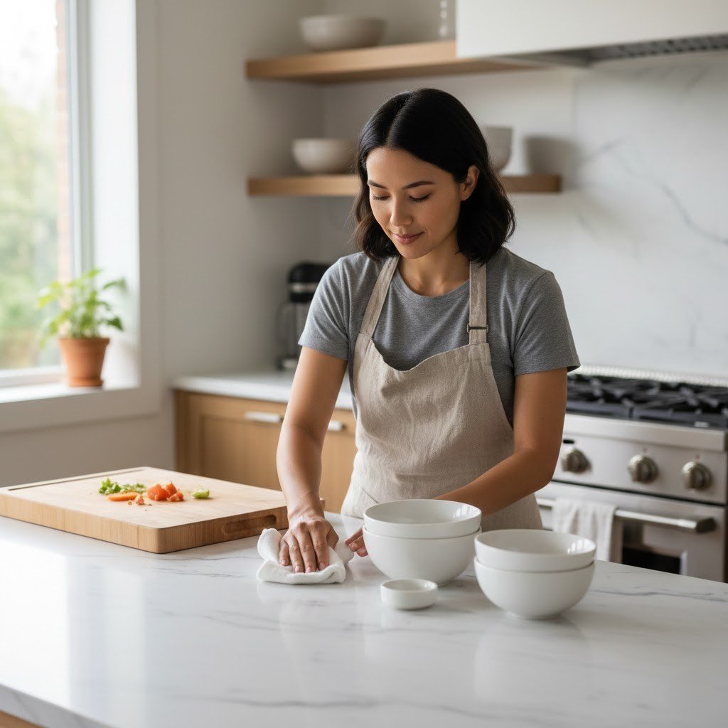 Organized work place enhances efficiency and less fatigue particularly when an individual is preparing numerous dishes concurrently and is bound by time. Washing dishes every time the cooking moves forward and having clean countertops makes a person create an illusion of control and tranquility in the process of cooking and make it a pleasurable experience instead of an anxious one.
