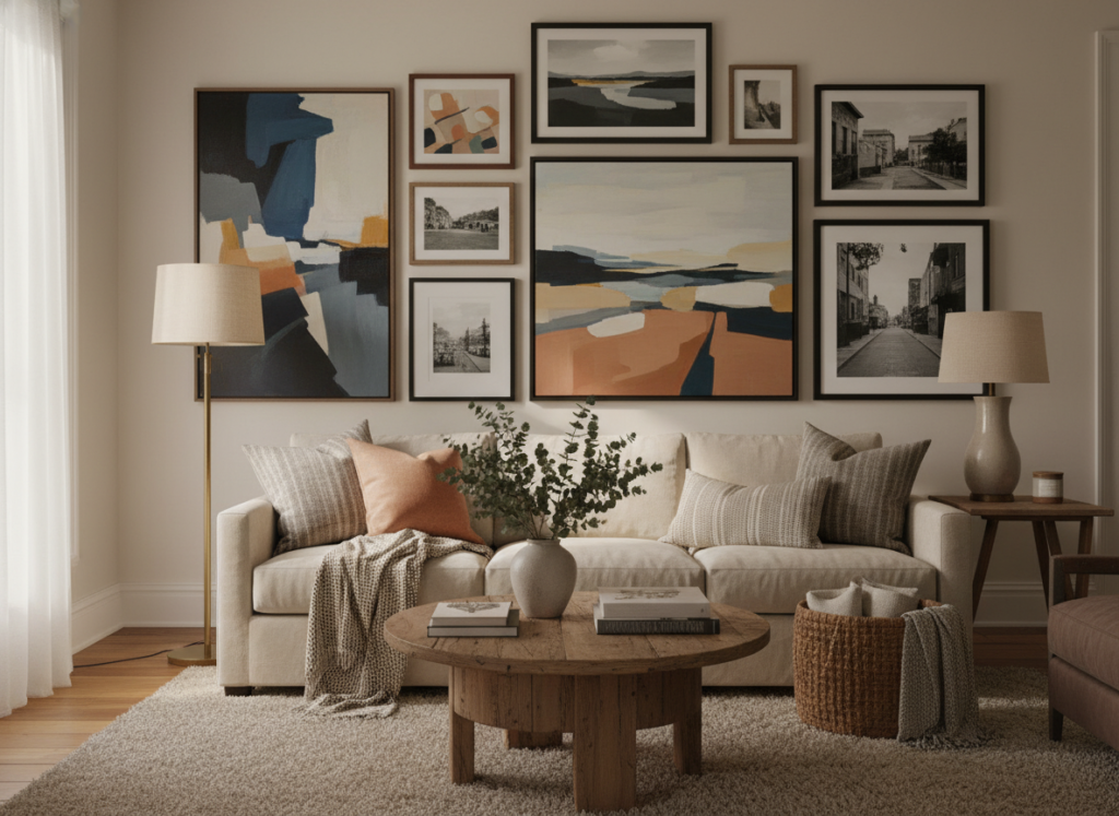 Art, pictures, or even mere trinkets can be used to personalize a room. Being in an environment surrounded by positive memories will make one feel relaxed and welcome without having to crowd the space.