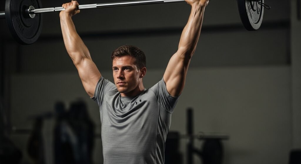 The overhead press strengthens the shoulders, triceps, and upper chest. It also requires core stability, making it a functional movement. Adding this exercise to a routine improves shoulder mobility and builds balanced upper body strength when performed consistently.