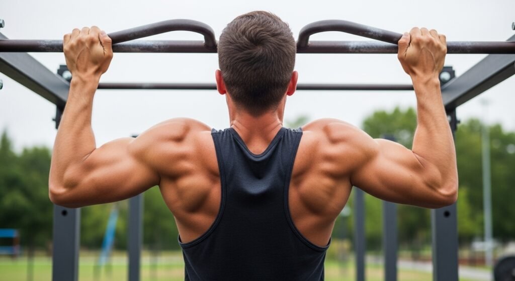 Pull ups are essential for developing upper back and arm strength. They primarily target the lats and biceps while improving grip strength. Individuals who perform pull ups regularly often see better posture and upper body definition compared to machine based alternatives.