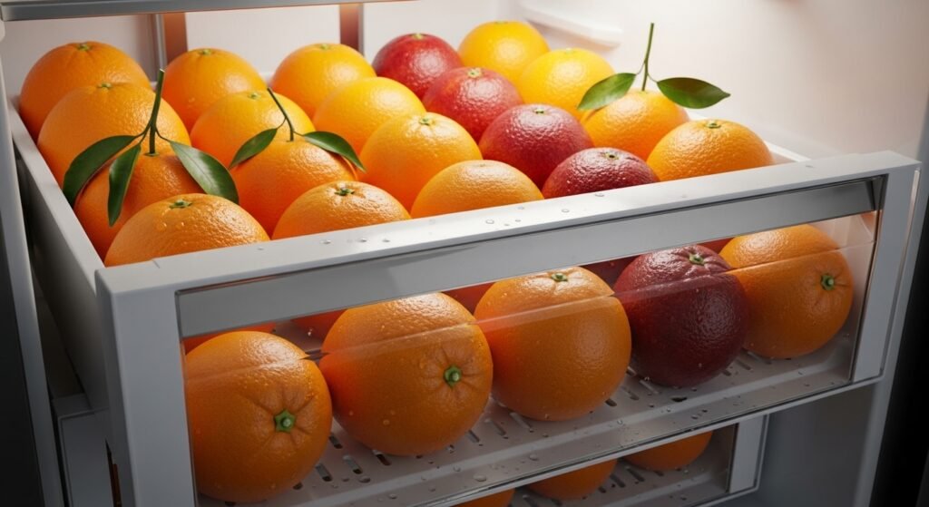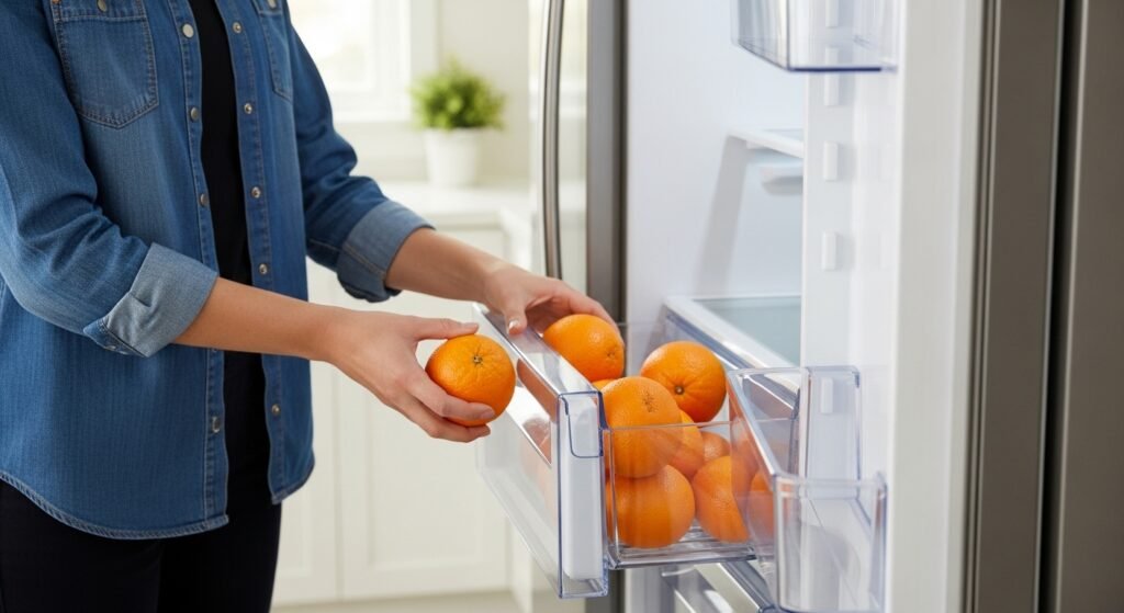 Proper placement inside the refrigerator also matters. The crisper drawer is the most suitable area because it maintains balanced humidity levels that prevent the fruit from drying out too quickly. Placing oranges loosely or in a breathable bag allows better airflow. This reduces excess moisture buildup, which can otherwise lead to faster spoilage.